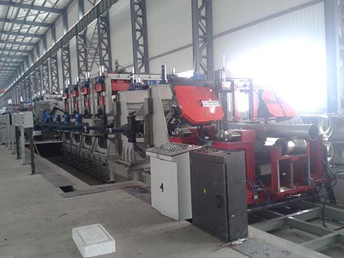 我公司近年还研发出精密控制成型,这种成型的优点是通过精密控制,粗成型的成型质量非常好,不需要精成型去修正管型,所以这种成型方式的精成型采用了不换辊的形式。这样,全部的成型机就不用更换轧辊,解决了以前的机组粗成型不用换辊,精成型必须换辊的问题,节省了轧辊投资,减少了换规格的时间,提高了机组效率。并且更换规格时采用全电脑控制,只要在电脑上输入管径、壁厚、材质等参数,轧辊就会自动到位。大大提高了机组效率和成品率。这种成型方式适合中大型机组,从219到711的机型都可以采用,大大节省了投资,提高了效率。