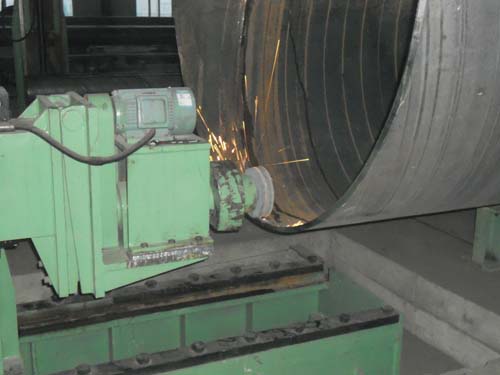埋弧焊接的钢管,焊缝有余高,在进行后续的平头作业和水压试验时,必须将钢管两端的焊缝磨掉。内外焊缝修磨机可以代替人工将钢管两端的内外焊缝磨平,节省劳动力,减轻劳动强度,提高生产效率。