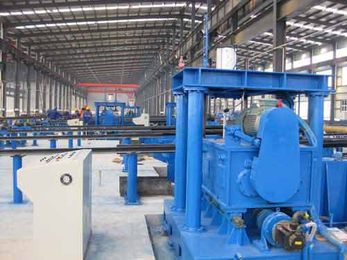 直缝焊管/无缝管用平头倒棱机主要用于对直缝焊管或无缝钢管的管端进行平头及加工坡口,配备仿形倒棱刀,加工的坡口均匀美观,具有全自动的工作模式、效率高、工作稳定可靠。 我公司直缝焊管/无缝管用平头倒棱机管径范围Φ20~Φ711,钢管壁厚1-25mm,钢管长度3-16M,材质Q235B-X100。二、直缝焊管平头棱机的工艺流程: 上管—接管—左端对齐—送管—夹紧—左端平头倒棱—松开夹具—运管—右端对齐—夹紧—右端平头倒棱—松开夹具—出管。