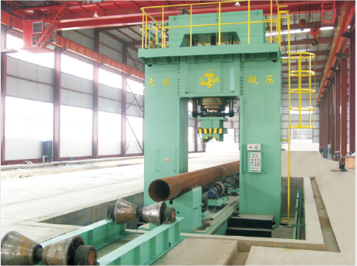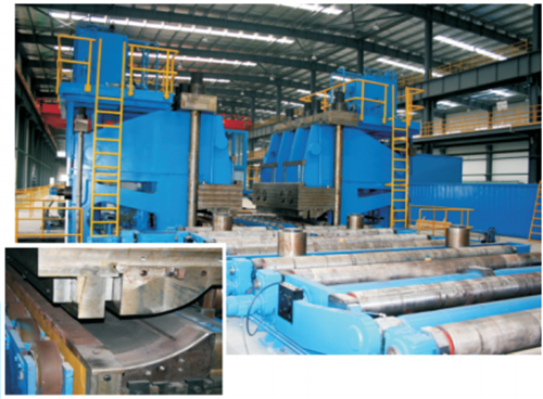 JCOE生产工艺优点是可以生产超过30mm厚度的钢管,适合特厚壁钢管生产;缺点是生产效率低(10支/小时),投资比较大。通常用于管径范围Φ508-Φ1422mm,壁厚8-40mm,长度10-12.5m规格直缝埋弧钢管的生产